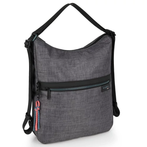 A Gabol Shani kollekció legújabb terméke női táska és női hátizsák egyben. A táska a letisztult eleganciát és a mindennapi praktikusságot ötvözi. Egy fő- és két mellékrekesszel rendelkezik. Kézben, vállon, és háton kényelmesen hordható, a pántok hossza állítható. Cipzáras főrekeszét két nyitott és egy cipzáras extra zseb gazdagítja. A táska hátulján elhelyezkedő függőleges, praktikus kialakítású mellékrekesz is cipzárral zárható: remek hely féltettebb személyes tárgyaink tárolására. A táska elülső cipzárja stílusosan kék színű, trendi. A karabineres kék-korall kulcstartó dísz pedig fiatalos megjelenést kölcsönöz a táska tulajdonosának.