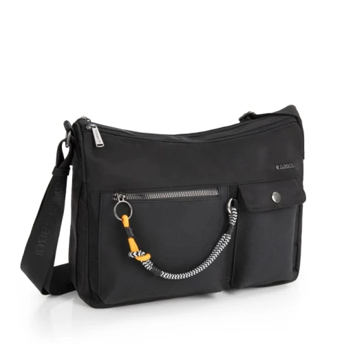 A Gabol Aisha női táska kollekció kellemes tapintású, trendi és vagány. A táska két fő- és három mellékrekesszel rendelkezik, a vállpánt hossza egyszerűen állítható. Egyik főrekeszében két nyitott zsebet találunk, a másik főrekeszt egy szintén cipzározható extra zseb gazdagítja. A táska elülső oldalán található mellékrekeszek egyike cipzáras, a másik pedig mágneses patenttal záródik. A táska számtalan zsebe és rekesze egyszerűvé teszi személyes tárgyaink rendezését.